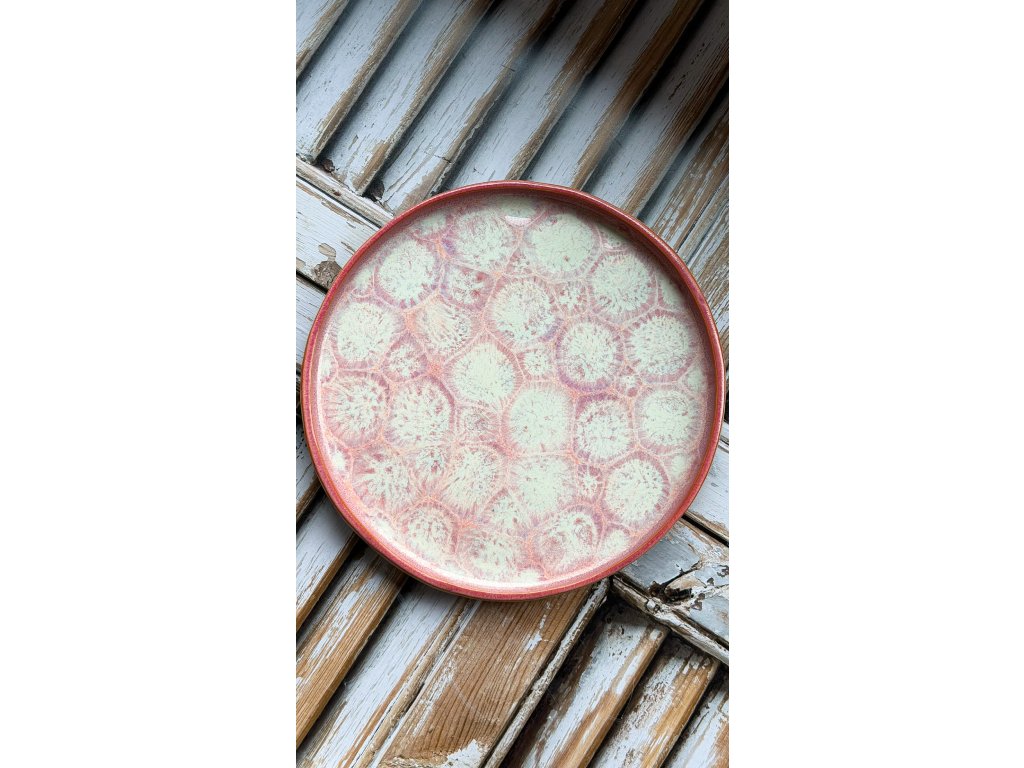 Talíř o průměru 26 cm z kameniny, který je ručně válený a domodelovaný.