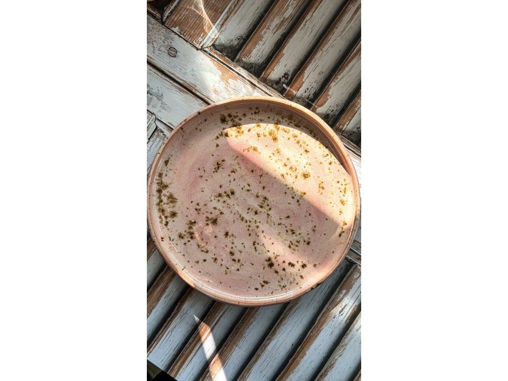 Talíř o průměru 26 cm z kameniny, který je ručně válený a domodelovaný.